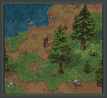 - grass, earth and lake shore ground tiles with several variation and size, all compatible with each other for smooth tile transition.